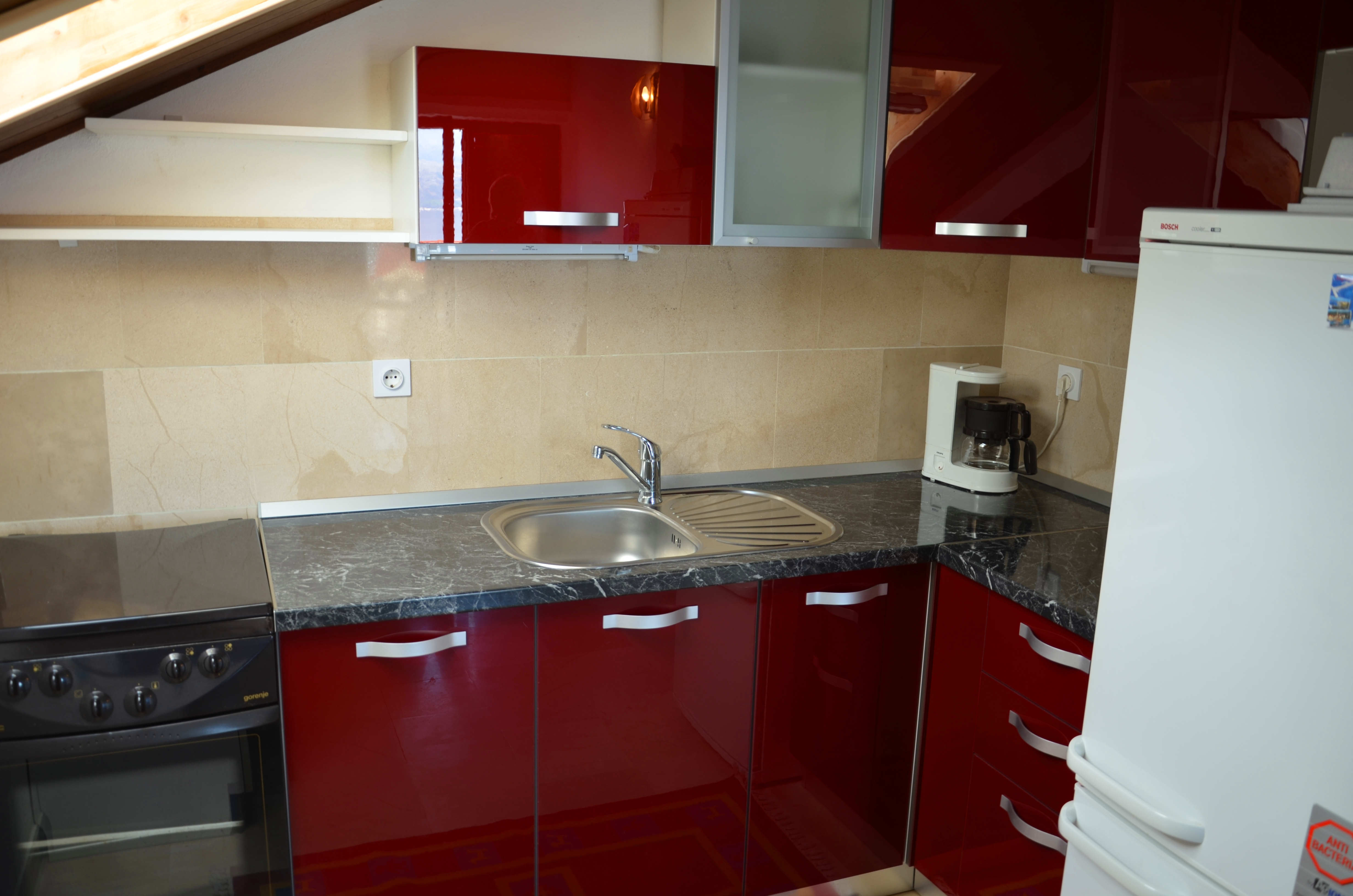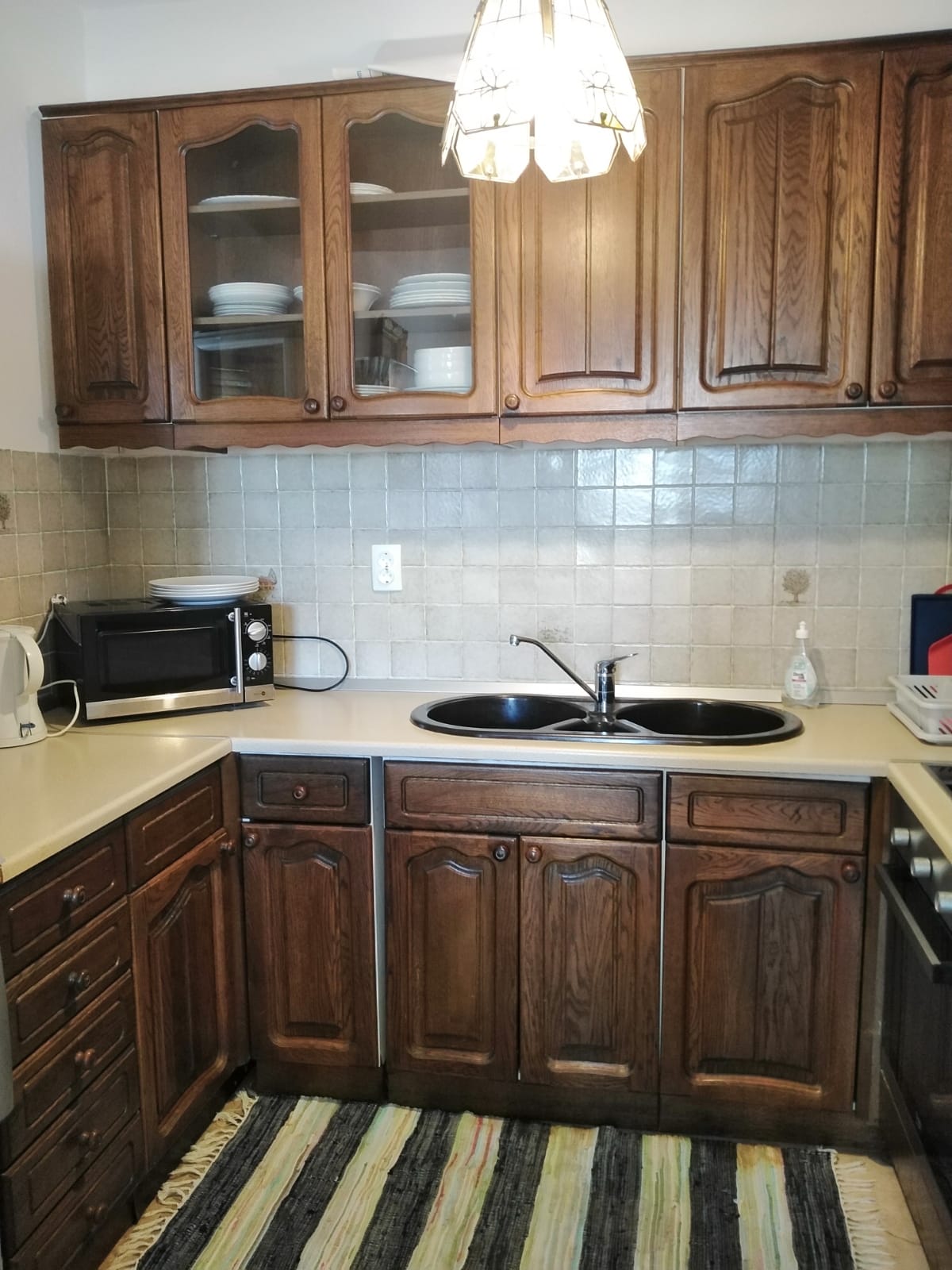 Die Küche ist voll ausgestattet mit allem nötigen, wie Geschirr, Besteck, einem Backofen mit Cerankochfeld, Mikrowelle, Kühlschrank usw...