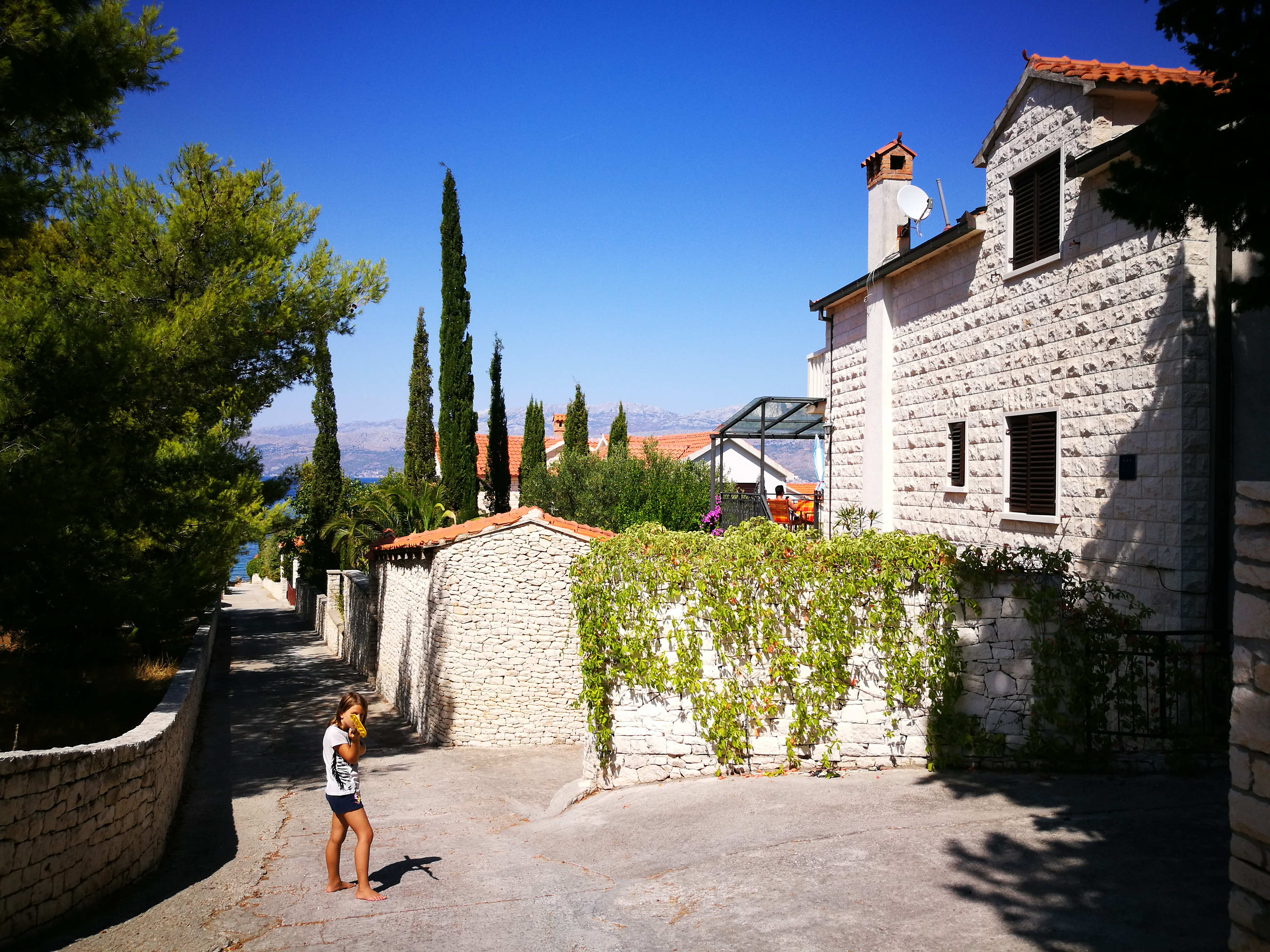 Immer am Meer entlang nach ca 3,5 km links halten und durch den wunderschönen Ortskern von Splitska fahren, am kleinen und pittoresken Ortsfriedhof vorbei fahren und hier nicht rechts den steilen Berg hinauf, sondern gerade aus weiter fahren (parallel zum Meer).