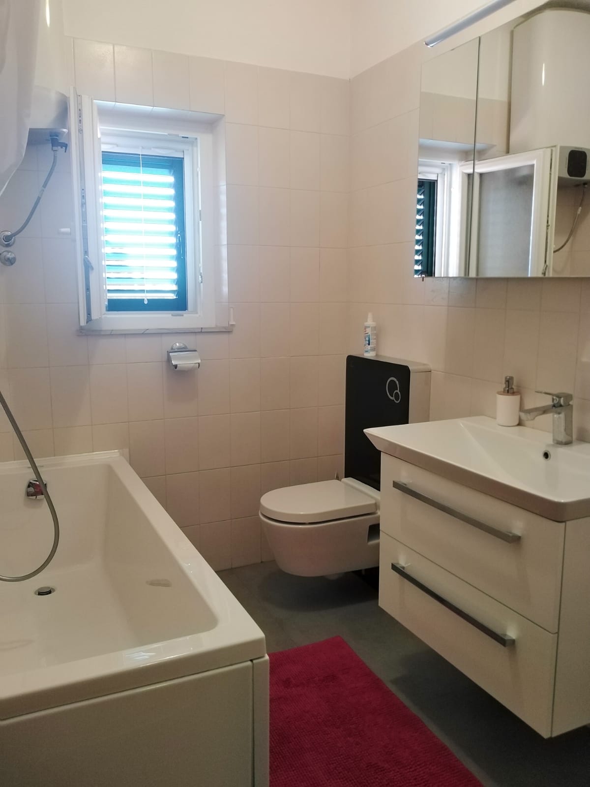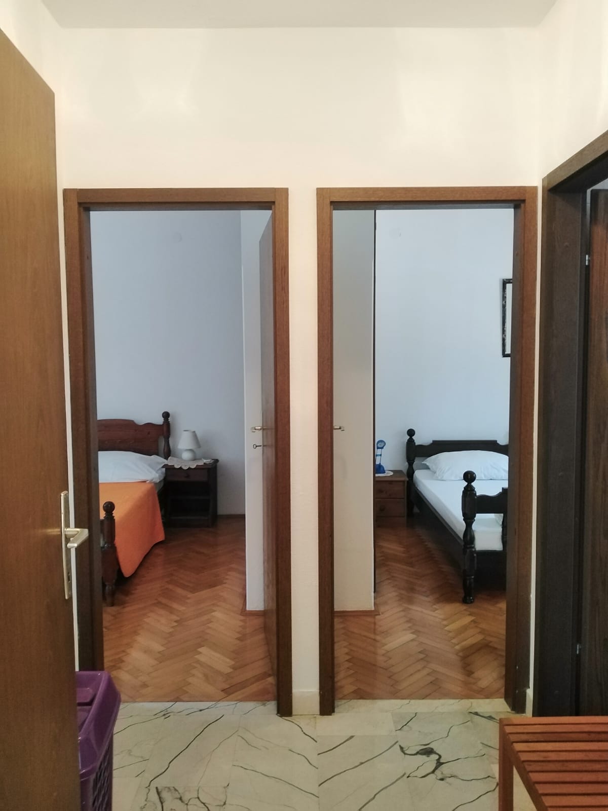 Das Appartement hat ca 75qm und besteht aus zwei Schlafzimmern, einmal mit Doppelbett und einmal mit zwei getrennten Betten (die nach Bedarf verschoben werden können), einem großen Wohnzimmer mit Küche und Essbereich, und einer großen Terasse.