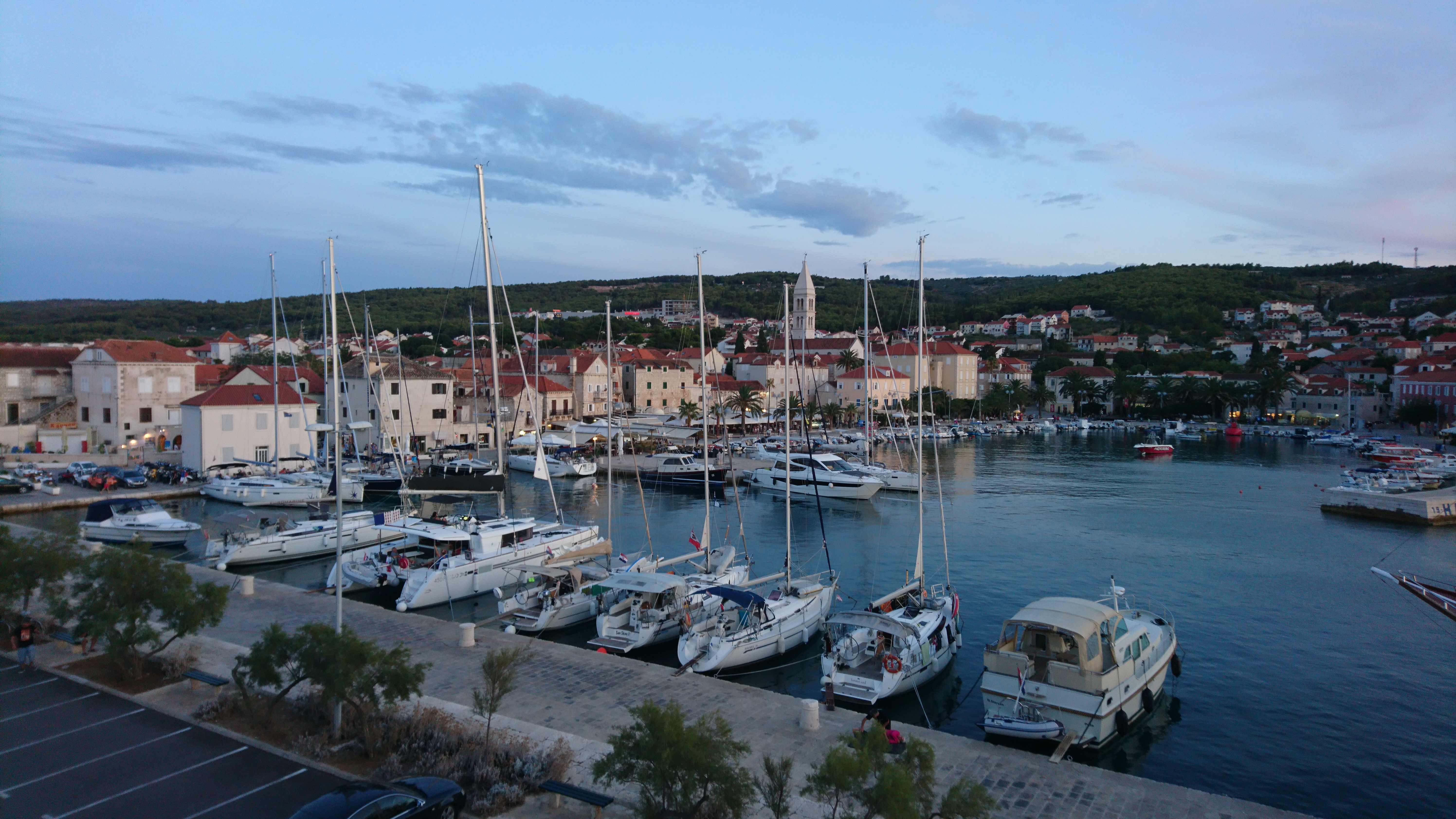 Von der Fähre aus kommend am Kreisverkehr die dritte Ausfahrt Richtung Splitska abbiegen.